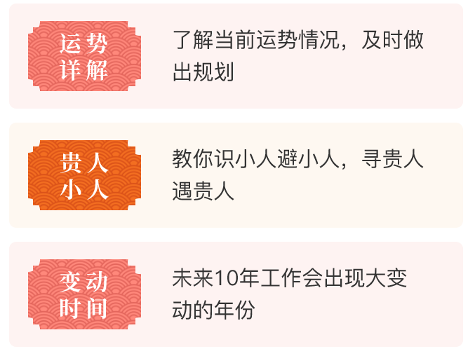 2、在您体验测算服务时,我们需要获取您的 姓名和生辰命格(出生日期),为了保证数据准确性, 我们建议您提供真实的个人信息,若您提供的信息有错误,会对测算结果的准确性造成偏差。我们保证您的所有个人信息除了用于生成测算数据以外,不会用于其他用途。